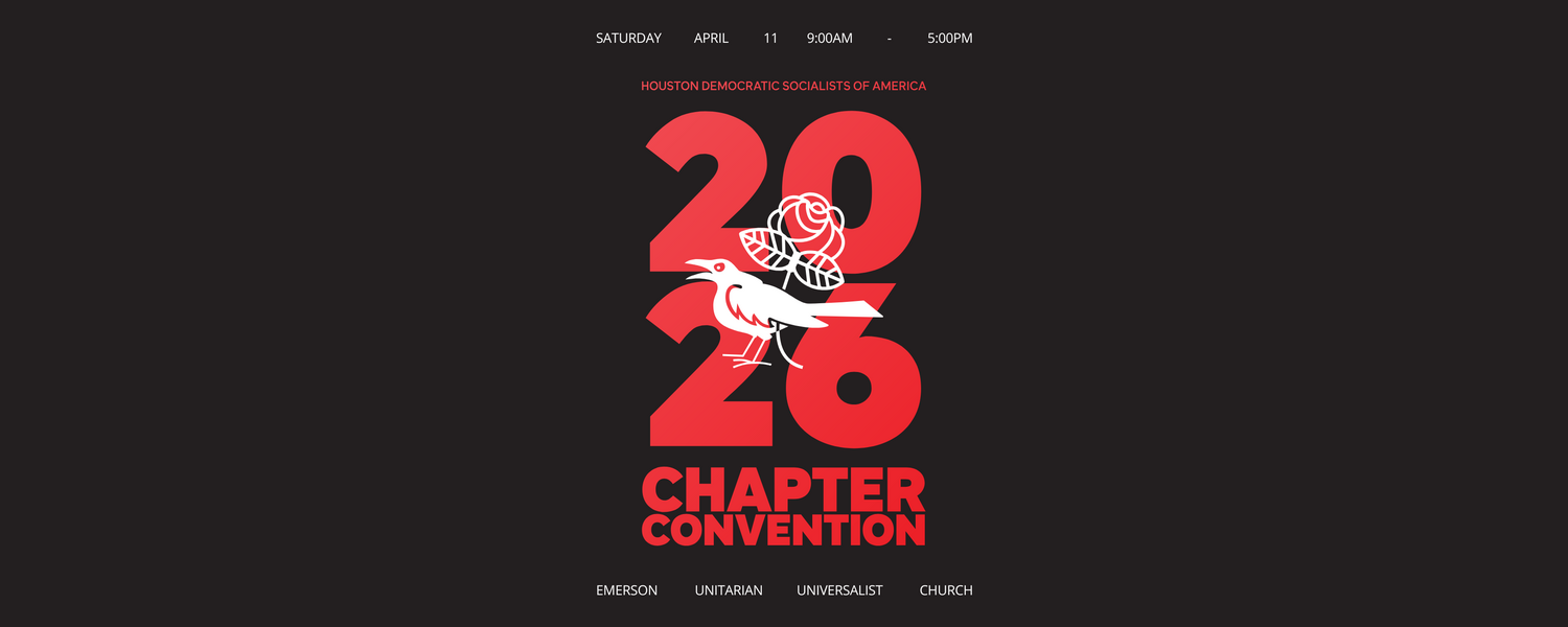 This is your Houston DSA 2026 Annual Meeting Home Page, where we will post all the important information including useful links, pre-convention events, forms to submit proposals & candidacies, agenda, and convention rules. The page will be constantly updated so keep checking it!