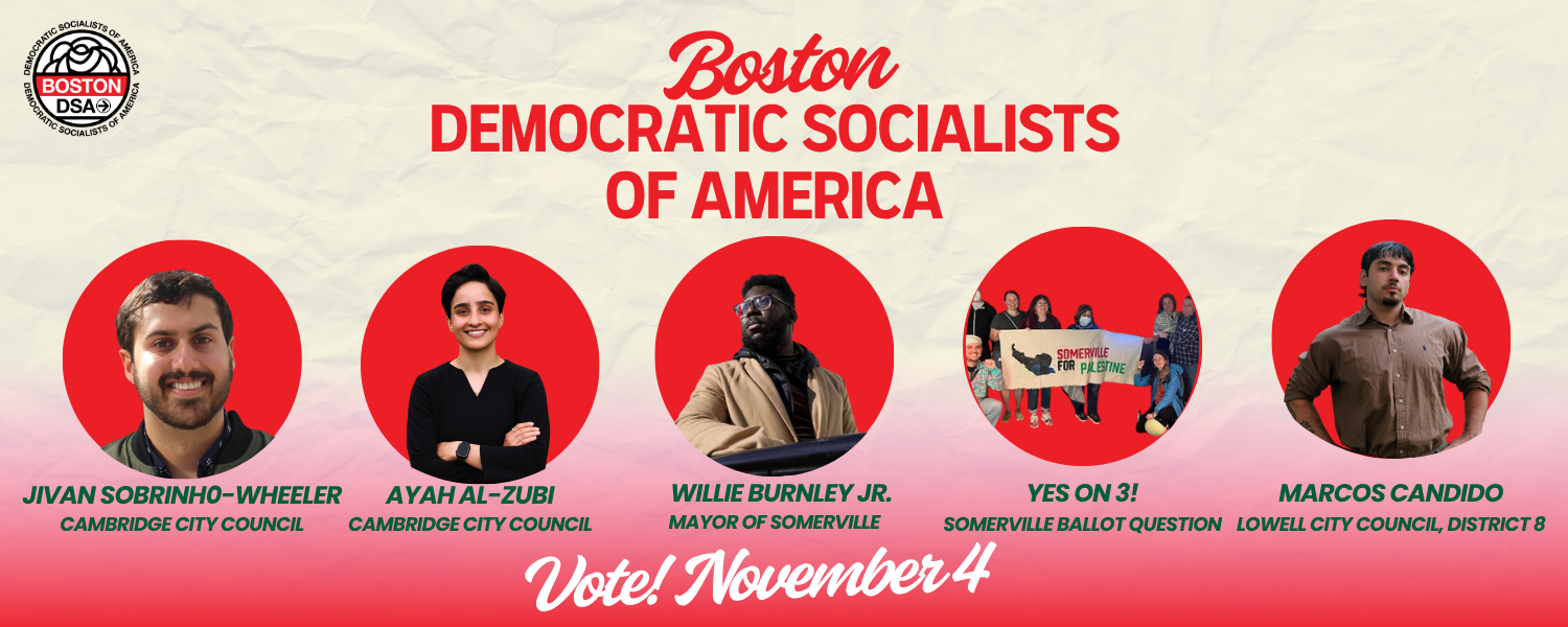 SOMERVILLE: Find canvasses for Willie on this page and more information here. Find GOTV shifts for the Palestinian solidarity ballot question here.