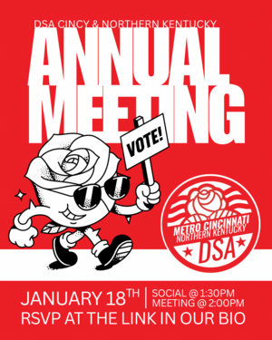 This is our hub where you can find every upcoming DSA Cincy event that we would recommend for new and old members alike! Check here for political education, general meetings, movie nights, and socials!