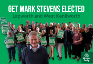 In Lapworth and West Kenilworth, Mark Stevens is working hard alongside the locally elected District Green councillors and his volunteer team to turn a 2nd place finish in 2021 into a win for our movement of hope. Taking on the Conservatives in this rural division is no easy task but, with year round work from Mark and the Green Team, we are now in a position in which winning is a reality.