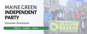 The Maine Green Independent Party is a political movement dedicated to empowering people, protecting the planet, and stopping the endless wars. We are a grassroots party that is completely free from corporate influence. We are for the people. We are standing up and demanding change. We have provided a list of actions here that you can take to support the party and get involved. Learn more at MaineGreens.Org |