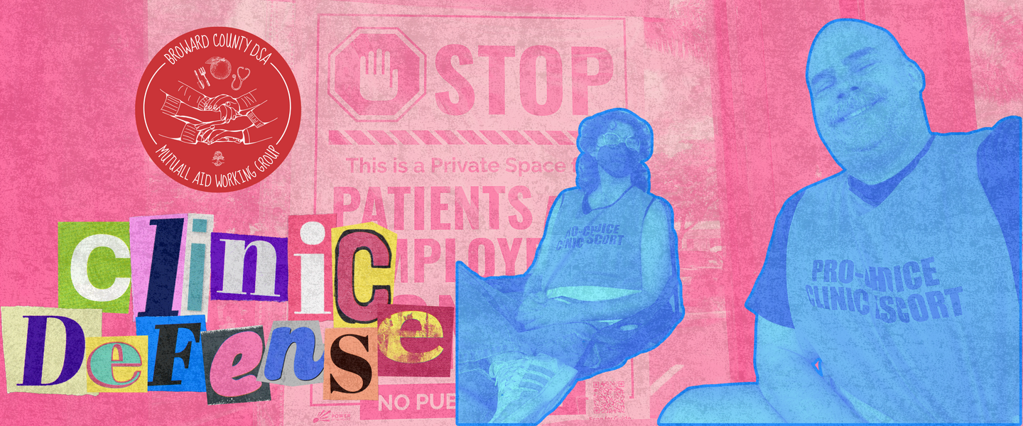 For over a year, Broward County DSA members have shown up every single Saturday to defend abortion access at East Cypress Women’s Center in Oakland Park, FL. Our Clinic Defense through the Mutual Aid Working Group supports patients, protects clinic staff and clients from harassment, and makes sure our community has access to real resources, not misinformation.