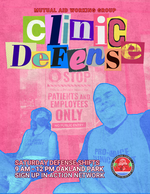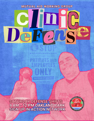 Clinic Defense happens every Saturday from 9 AM–12 PM in Oakland Park. If you’ve been wanting a concrete way to support abortion access in Florida, sign up for a shift and stand with your community!