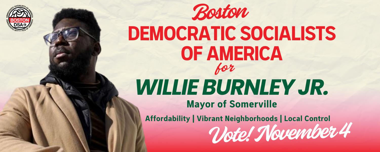 Join Boston DSA in working to get Willie elected as Mayor of Somerville!