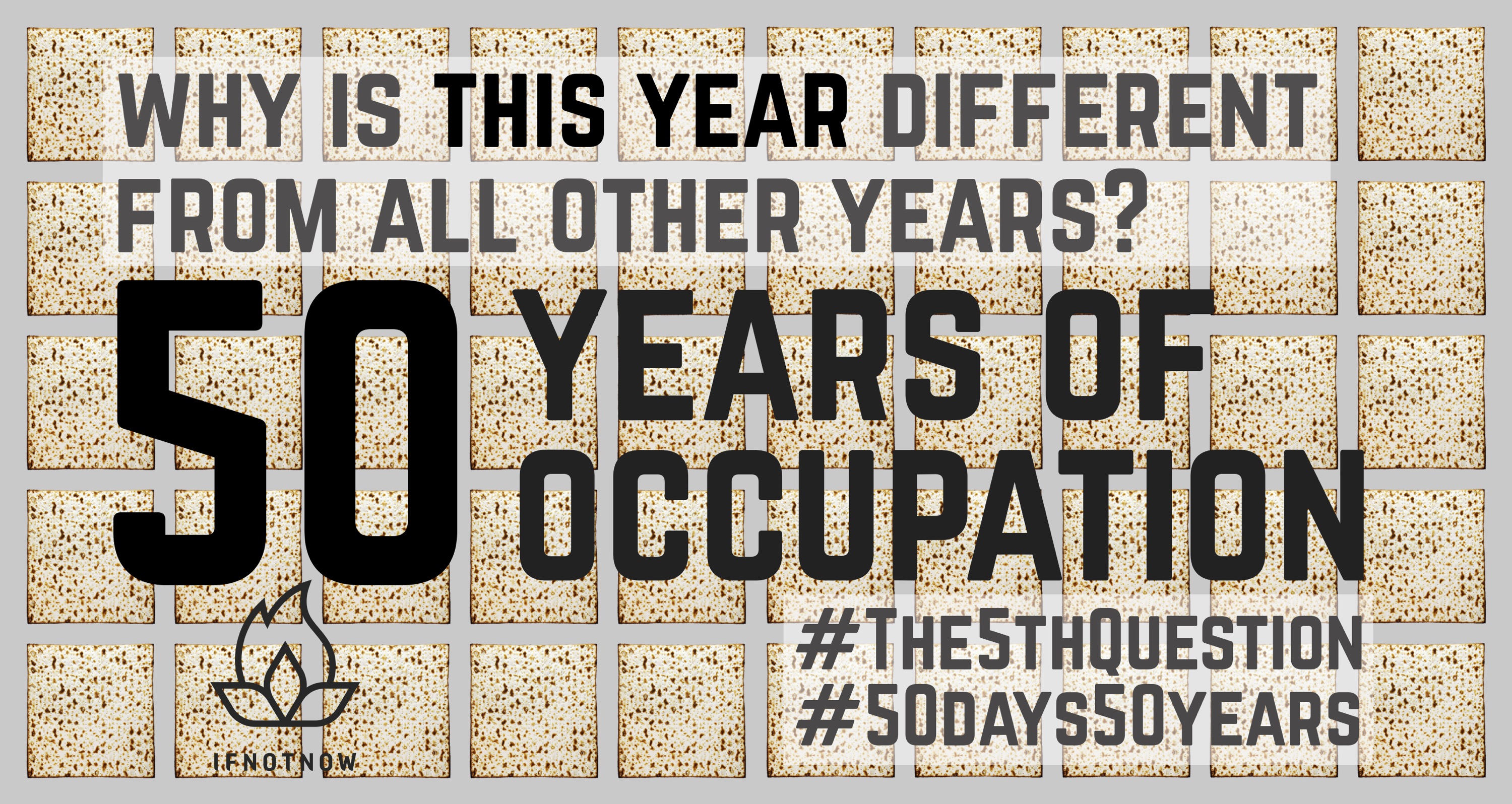 On Thursday, hundreds of us across the country will come together before Passover to ask the 5th question: “Will you talk about 50 years of Occupation this Passover?