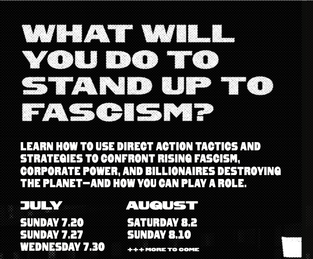 JOIN PLANET OVER PROFIT TO LEARN HOW TO USE DIRECT ACTION TACTICS AND STRATEGIES TO CONFRONT RISING FASCISM, CORPORATE POWER, AND BILLIONAIRES DESTROYING THE PLANET—AND HOW YOU CAN PLAY A ROLE.