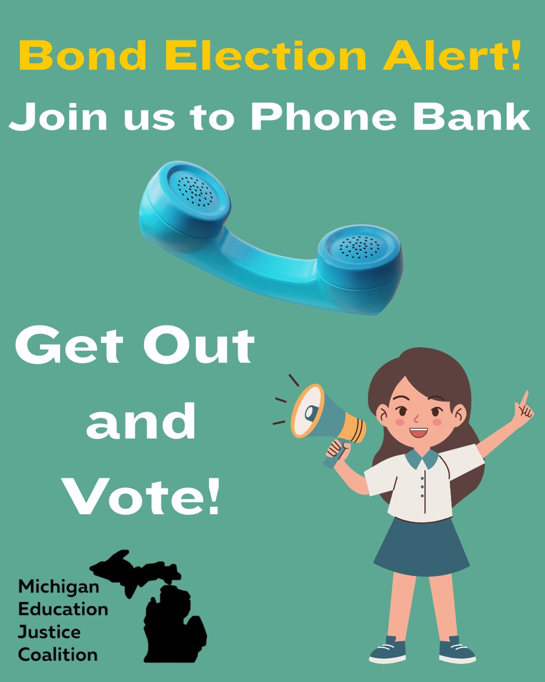 This phone bank is 501c3 compliant. We will inform people about the voting opportunity, direct them to info on the school bond, and share election information.