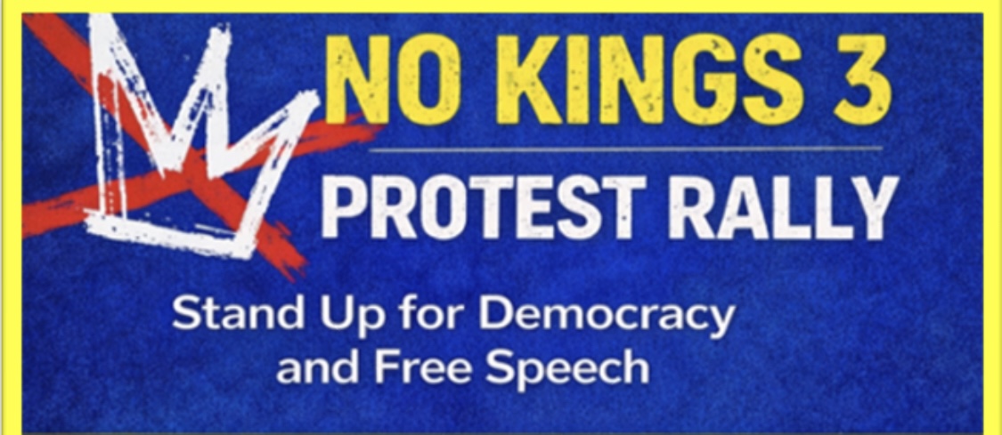 If you are most comfortable in a smaller venue, we hope you will join us from 12 -2 pm as we celebrate No Kings 3.