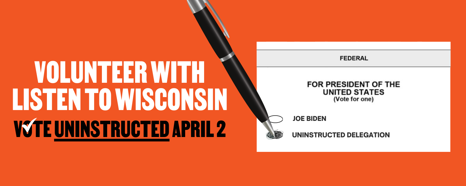 Join us to call Wisconsin voters to urge them to vote uninstructed in the Democratic Primary. This is direct action at the ballot box - we are voting our values and telling the Biden administration it must immediately change course in Gaza.