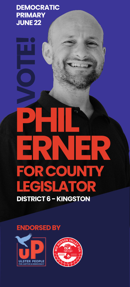 Come join Mid-Hudson Valley DSA as we talk to neighbors about Phil Erner's vision of an Ulster County that works for the working class. You deserve affordable housing, clean energy, and better public transportation. To make this a reality we need your help to elect Phil. Experienced canvassers will be there to help you. Please sign up now!