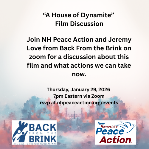 Accessing the film: This movie is available to stream on Netflix for those who have an account. If you are not able to access this movie on your own, but would like to be a part of this discussion, let us know (info@nhpeaceaction.org). If there are enough people who need access to the movie, we will attempt to connect people to watch the movie together. As you watch the movie, think about how you feel about the threat of nuclear war, what you think is realistic considering the actions of current world leaders, and how you feel life would change after a nuclear attack.