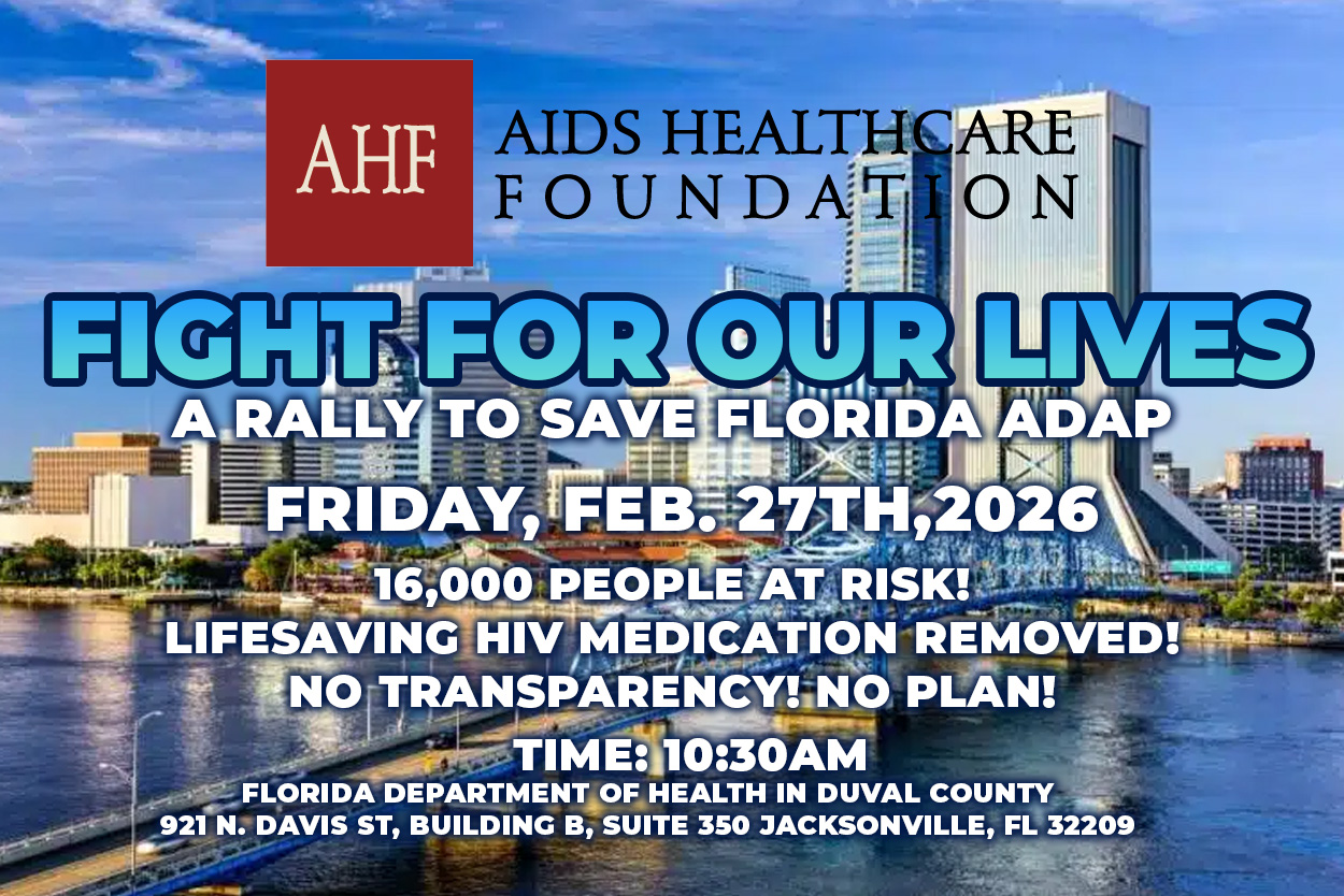 Join AIDS Healthcare Foundation and coalition partners at the Florida Department of Health in Jacksonville to demand that the state reverse these devastating cuts and protect the health and lives of people living with HIV across Florida.