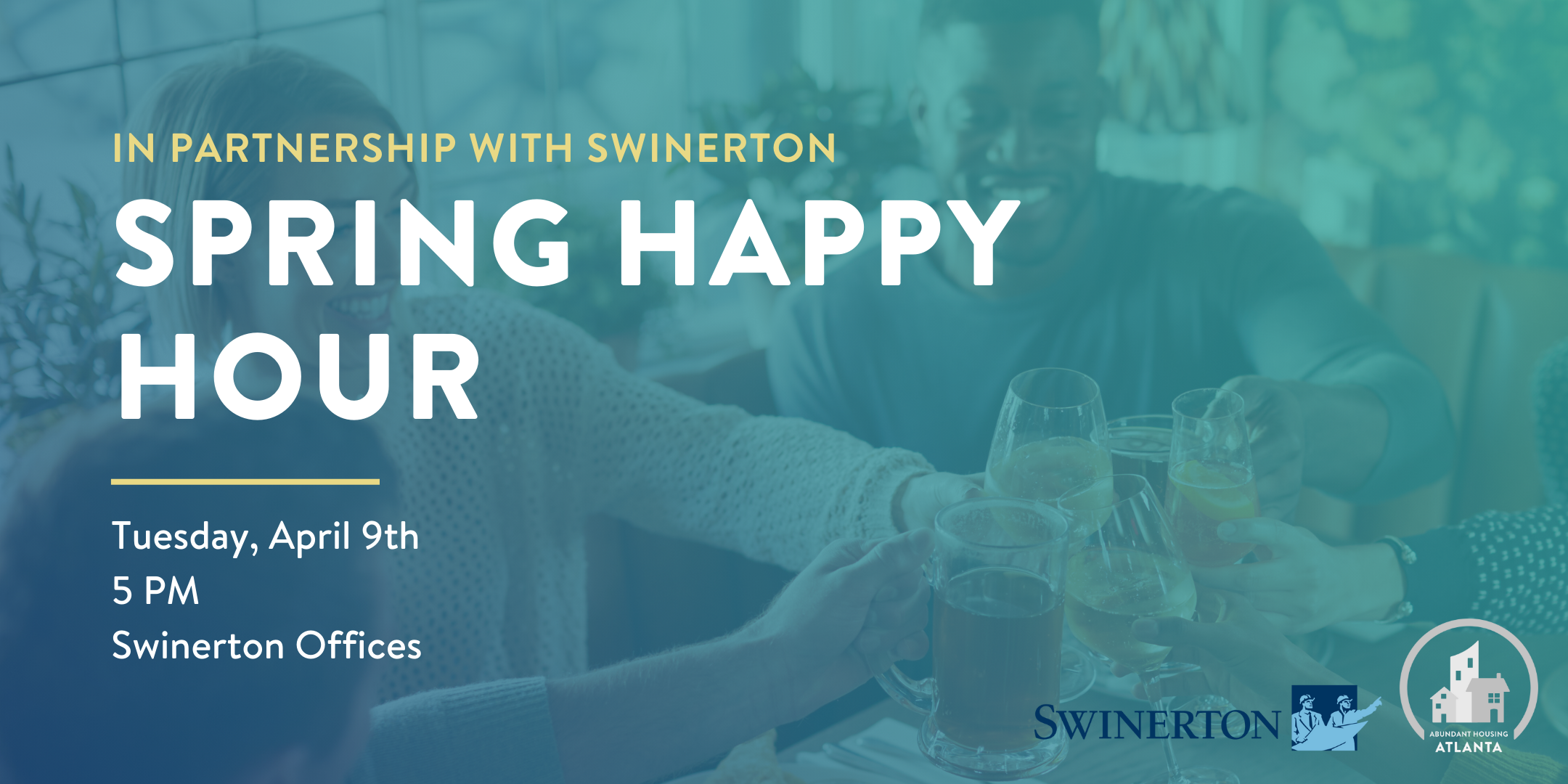 Let's get together! Join us for Abundant Housing Atlanta's spring happy hour, in partnership with Swinerton.