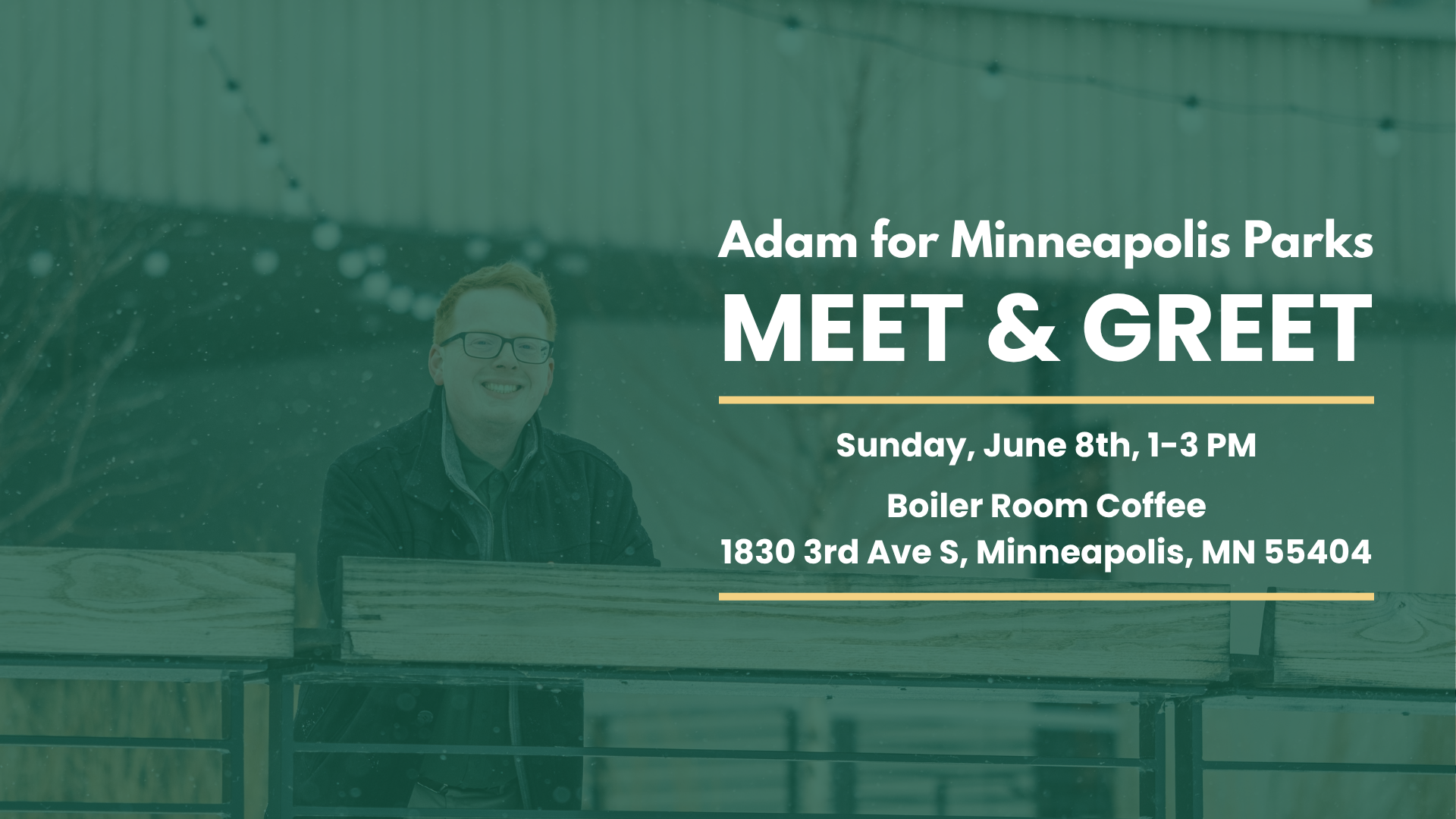 Swing by Boiler Room Coffee, pick up a snack and refreshment, and learn more about our campaign for Minneapolis Park Board!