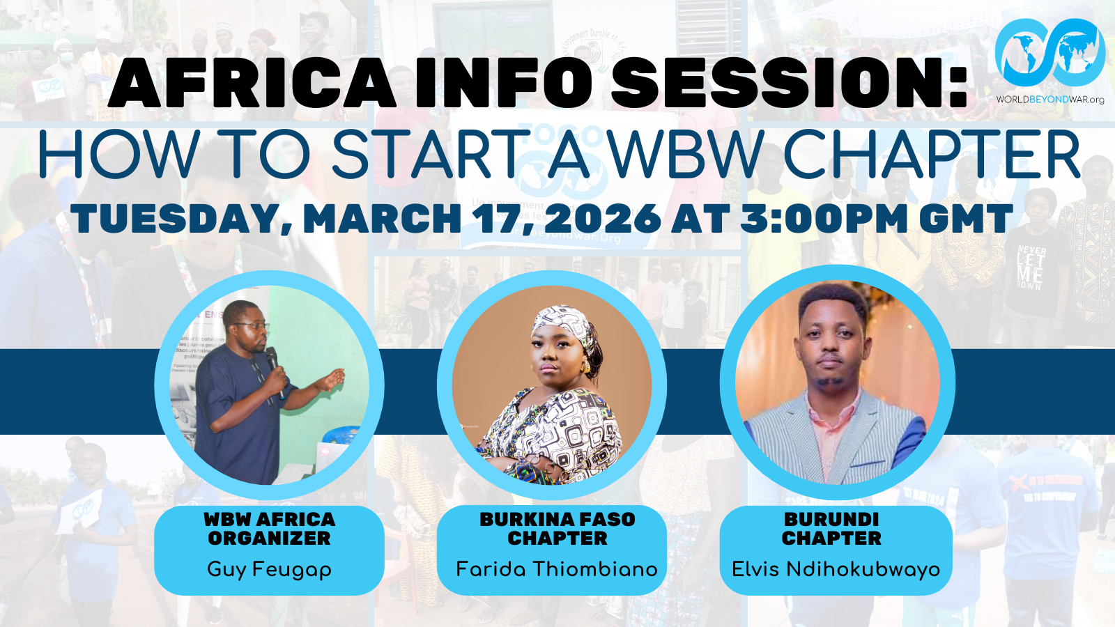 Guy Feugap is Africa Organizer for World BEYOND War. He is a secondary school teacher, writer, and peace activist, based in Cameroon. He has long worked to educate youths for peace and non-violence. His work has put young girls in particular at the heart of crisis resolution and awareness raising on several issues in their communities. He joined WILPF (Women’s International League for Peace and Freedom) in 2014 and founded the Cameroon Chapter of World BEYOND War in 2020.