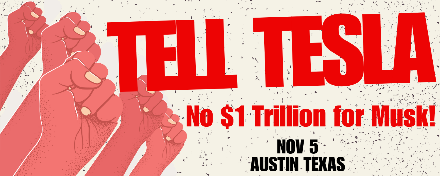 Join statewide and community groups in Austin, Texas to tell Tesla NO to Elon Musk's $1 Trillion dollar pay package.
