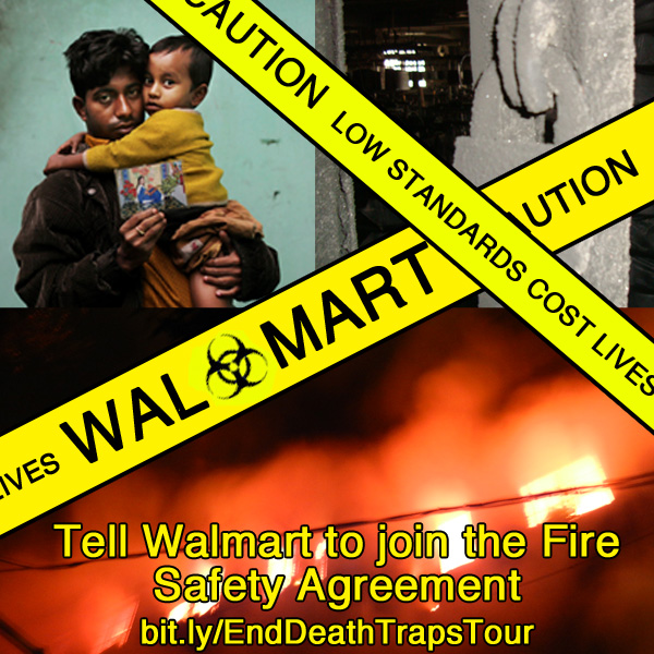On November 24, 2012, 112 garment workers died in a horrific fire at Tazreen Fashions, a Walmart supplier in Bangladesh. Join us for a discussion about what happened and what can be done, with presentations from a Bangladeshi garment worker, Kalpona Akter, director of the Bangladesh Center for Worker Solidarity, and Jan Van Tol, national organizer with United Students Against Sweatshops.