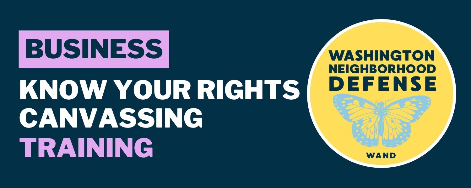 Washington Neighborhood Defense (WAND) is a network of volunteer canvassers helping build community defense in our neighborhoods one business at a time. Join us to find out how you can help businesses prepare for possible interactions with ICE and protect their employees.