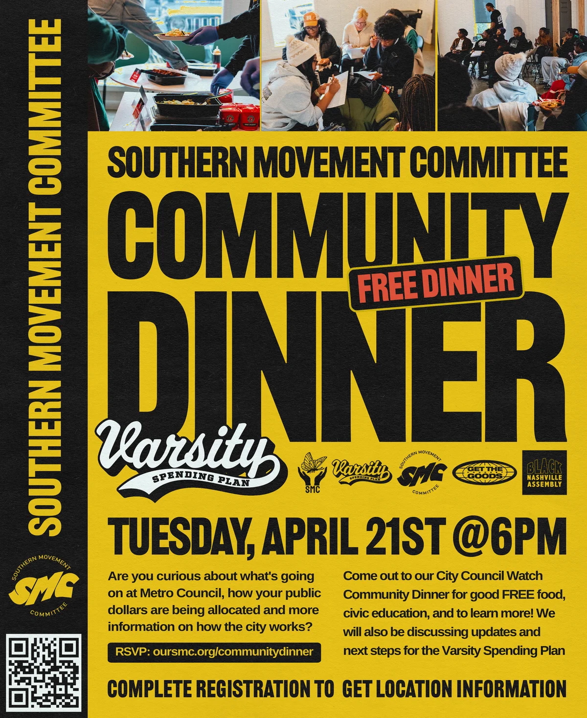 Come out to our City Council Watch Community Dinner for good FREE food, civic education, and to learn more! We will also be discussing updates and next steps for the Varsity Spending Plan.