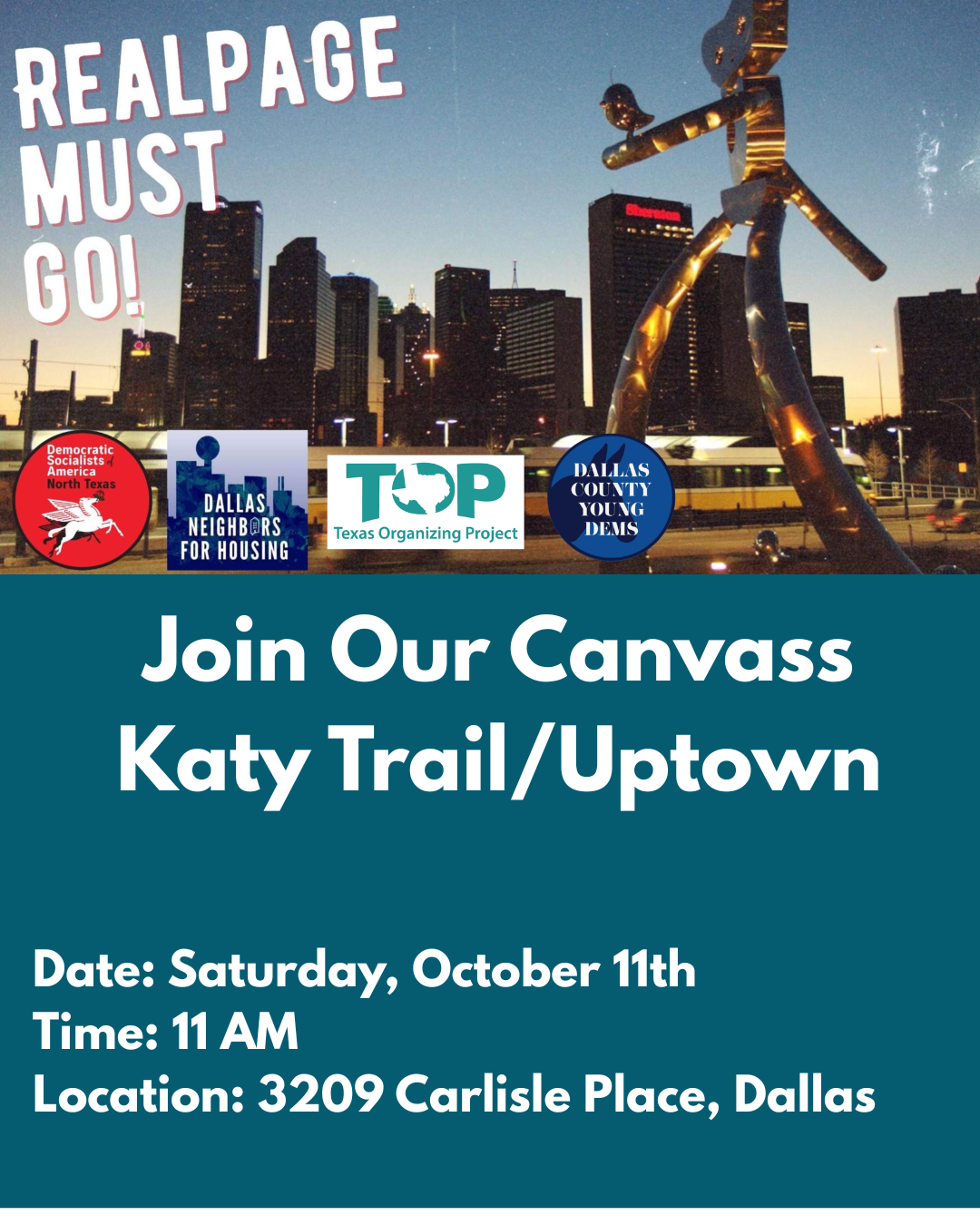 Join for a special Saturday canvass to get signatures for our joint petition to ban algorithmic pricing in Dallas! We will be meeting at Snyder's Union Plaza, 3209 Carlisle Place. We will have a group canvassing along the Katy Trail and another along McKinney Ave.