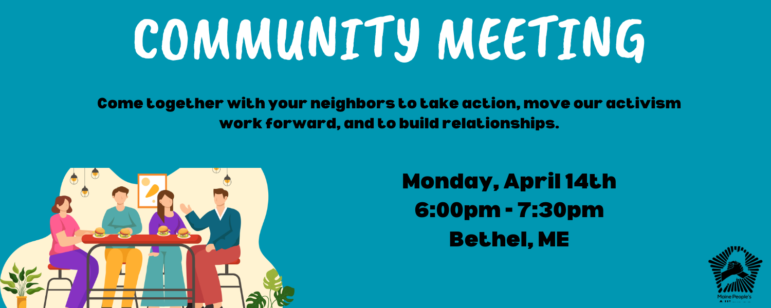 Join MPA members from Bethel and surrounding towns as we work to take action in our community and move MPA's work forward. This is an opportunity to connect with neighbors and build relationships with those passionate about social action. Dinner is provided, and please RSVP!