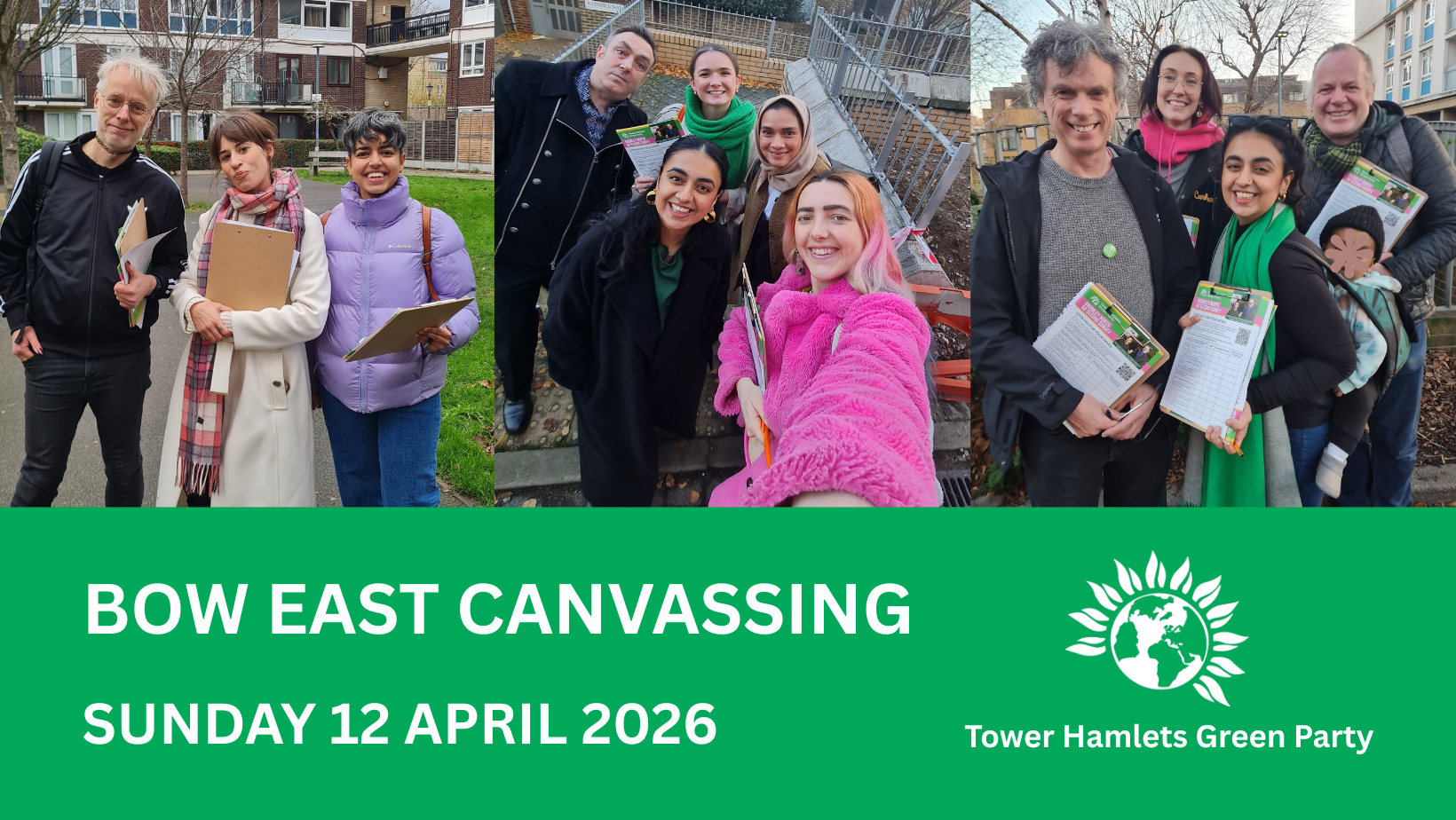 🍃 Join us for a day out of canvassing and leafletting in Bow East!