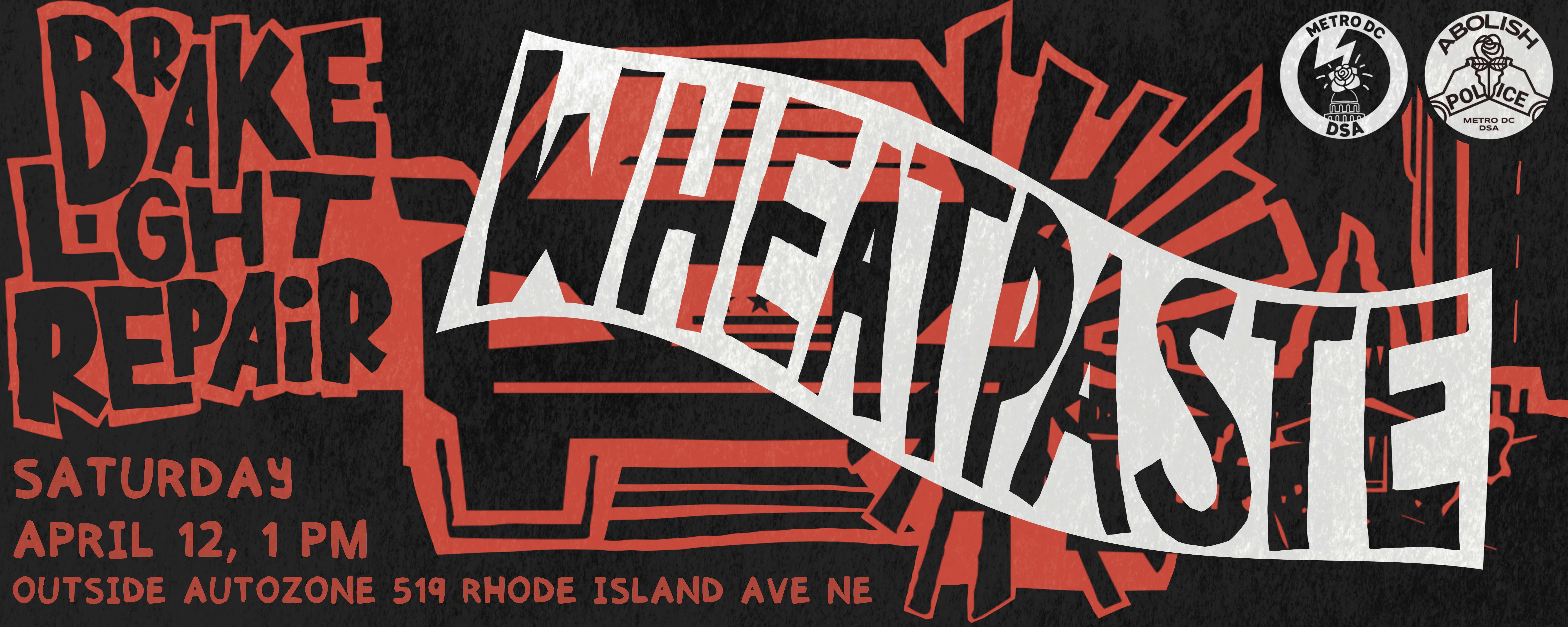 RSVP to MDC DSA’S Abolition Working Group’s Brake Light Repair training and wheatpasting to help prep for the training and assign turf for wheatpasting/canvassing