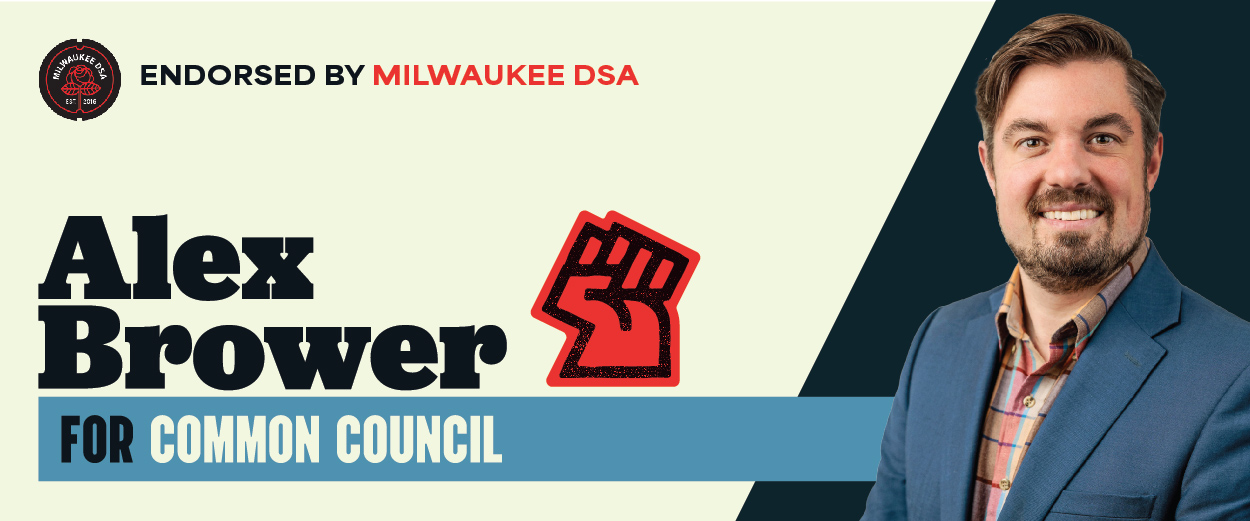 Come join our working class movement in celebration at a rally and fundraiser at Vintage Bar for Alex Brower in his race for Milwaukee Common Council District 3. There will be food, music, and of course speeches from the candidate and other Milwaukee organizers. Join us for the fun, and please consider donating to the campaign.