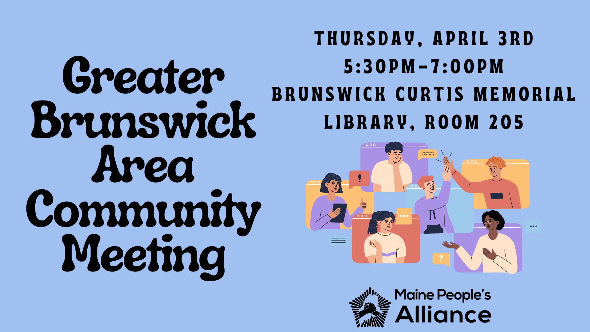 Join MPA members from Brunswick and surrounding towns as we work to take action in our community and move MPA's work forward. This is an opportunity to connect with neighbors and build relationships with those passionate about social action. Dinner is provided, and please RSVP!