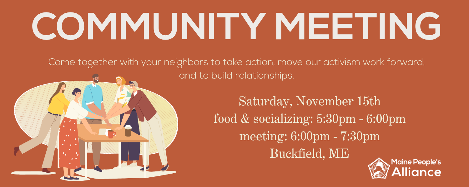 Join MPA members from Buckfield and surrounding towns as we work to take action in our community and move MPA’s work forward. This is an opportunity to connect with neighbors and build relationships with those passionate about social action.