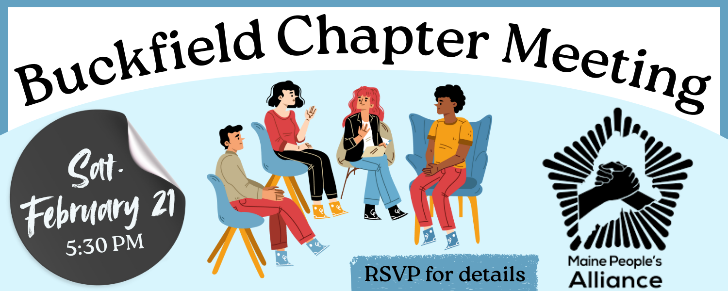 Join MPA members from the Buckfield area as we work to take action in our community and move MPA's work forward. Come hear more about what's happened since our last meeting.