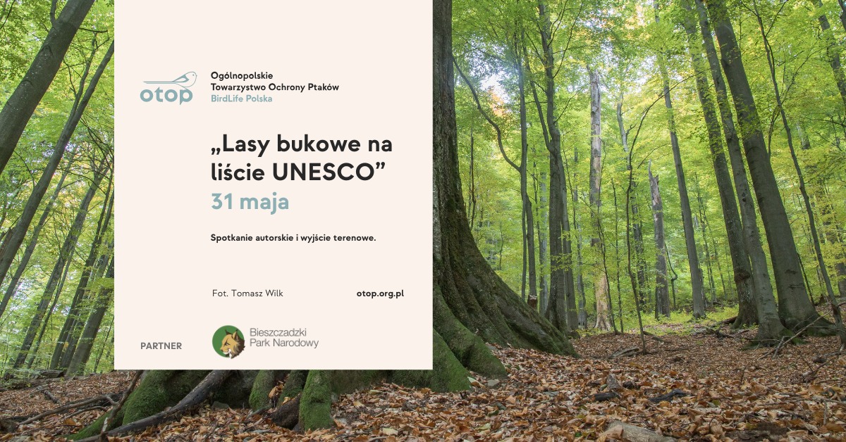 Ogólnopolskie Towarzystwo Ochrony Ptaków i Bieszczadzki Park Narodowy serdecznie zapraszają na spotkanie autorskie wokół książki "Lasy bukowe na liście UNESCO. Rozmowy o buczynach - tych bliższych i tych dalszych".