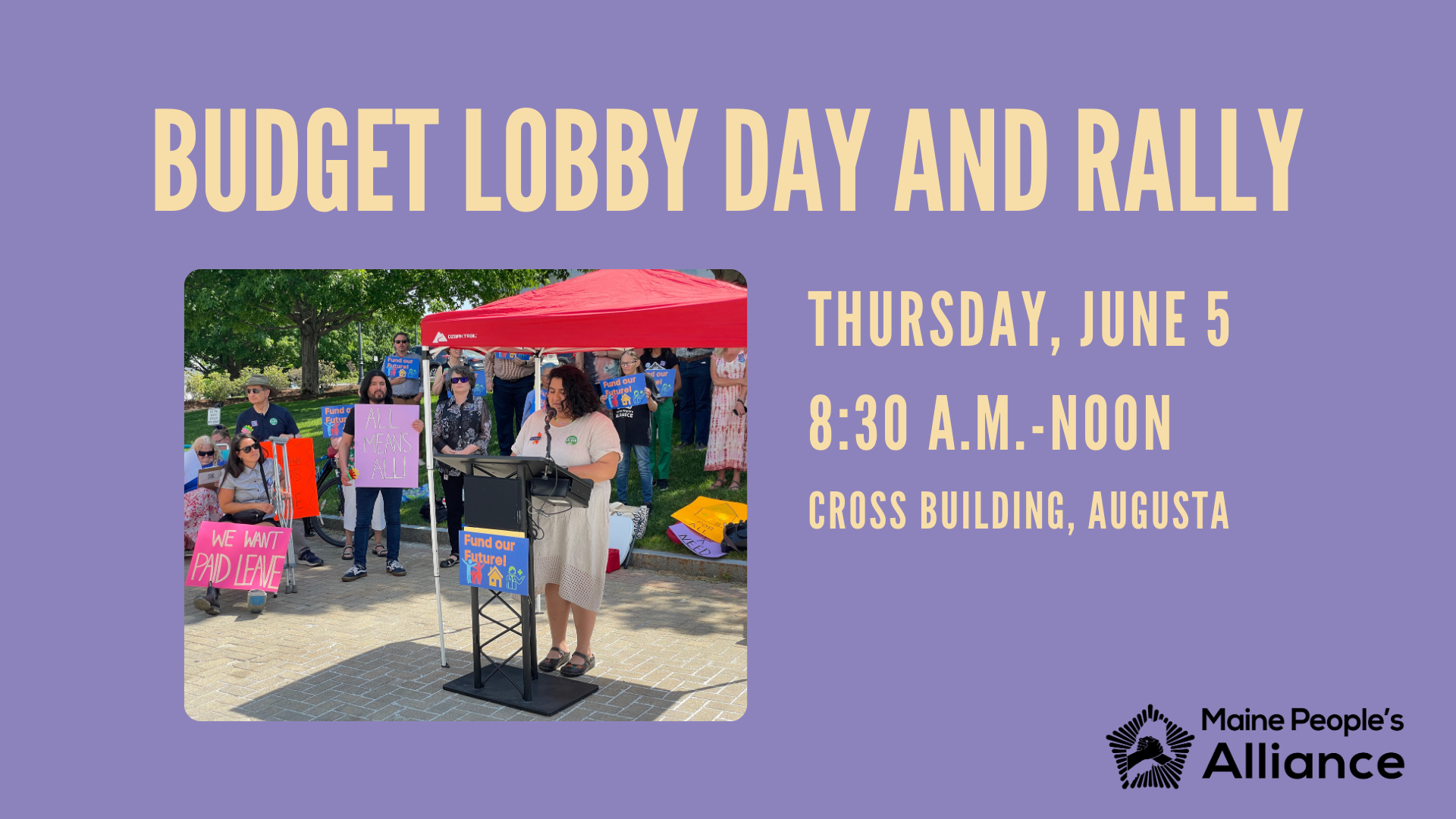 Around late morning (precise time TBD), stay with us for a press conference, to urge the legislature to fund the programs Mainers depend on -- by taxing the wealthiest Mainers and rich corporations!