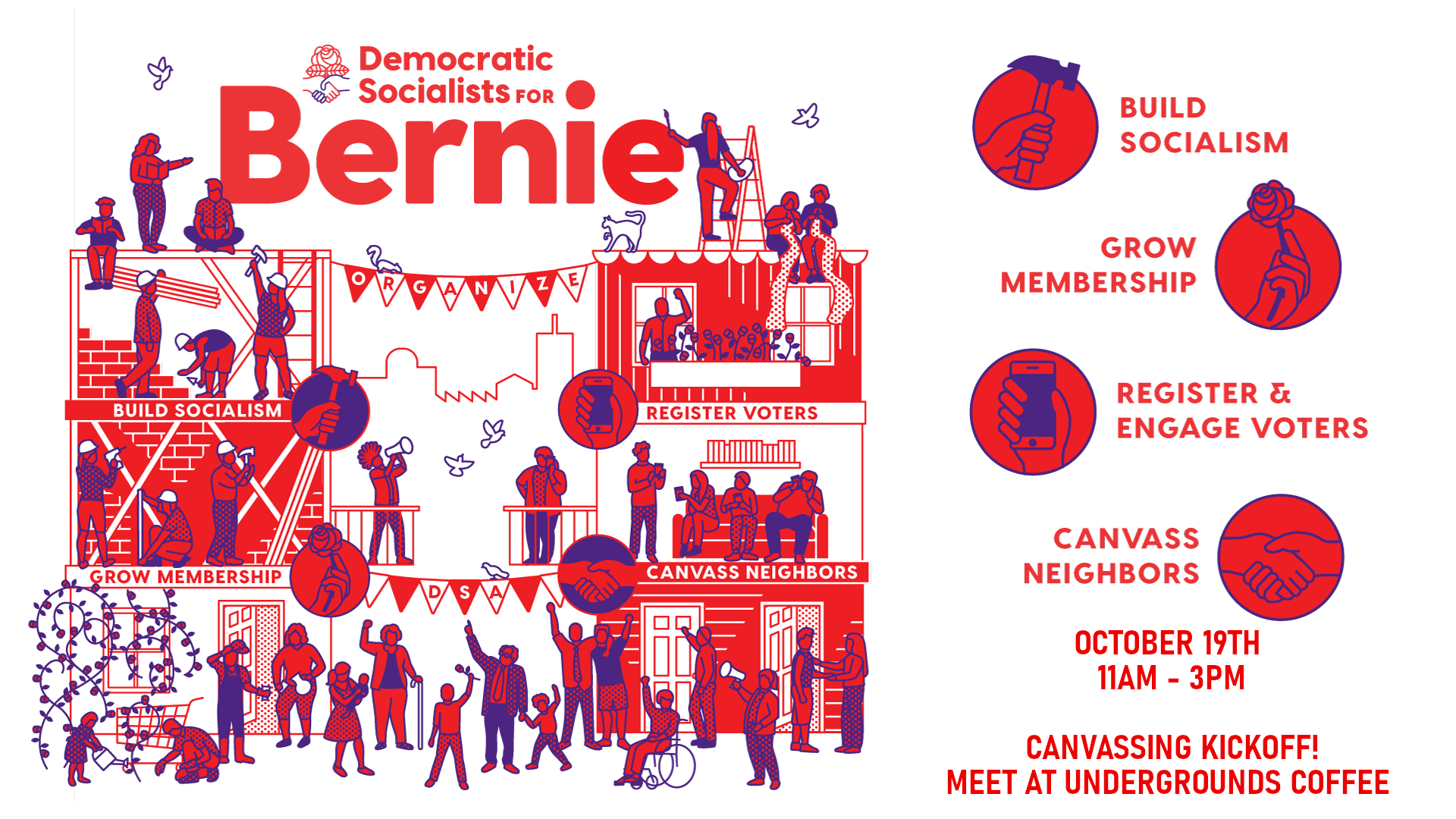 Join DSA for Bernie Saturday the 19th in South Buffalo! We'll meet up at Undergrounds Coffee then head out in the neighborhood to sign up Bernie supporters, register voters, and talk to the community about DSA and Bernie 2020!