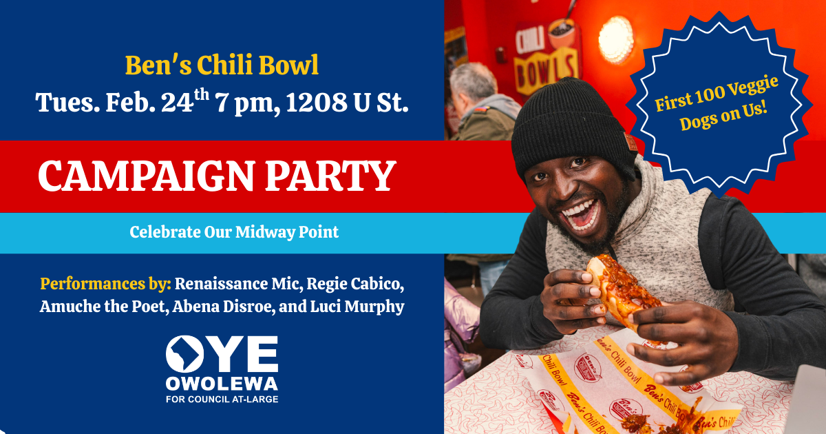Celebrate the midway point of Oye's campaign for DC Council At-Large 🎉