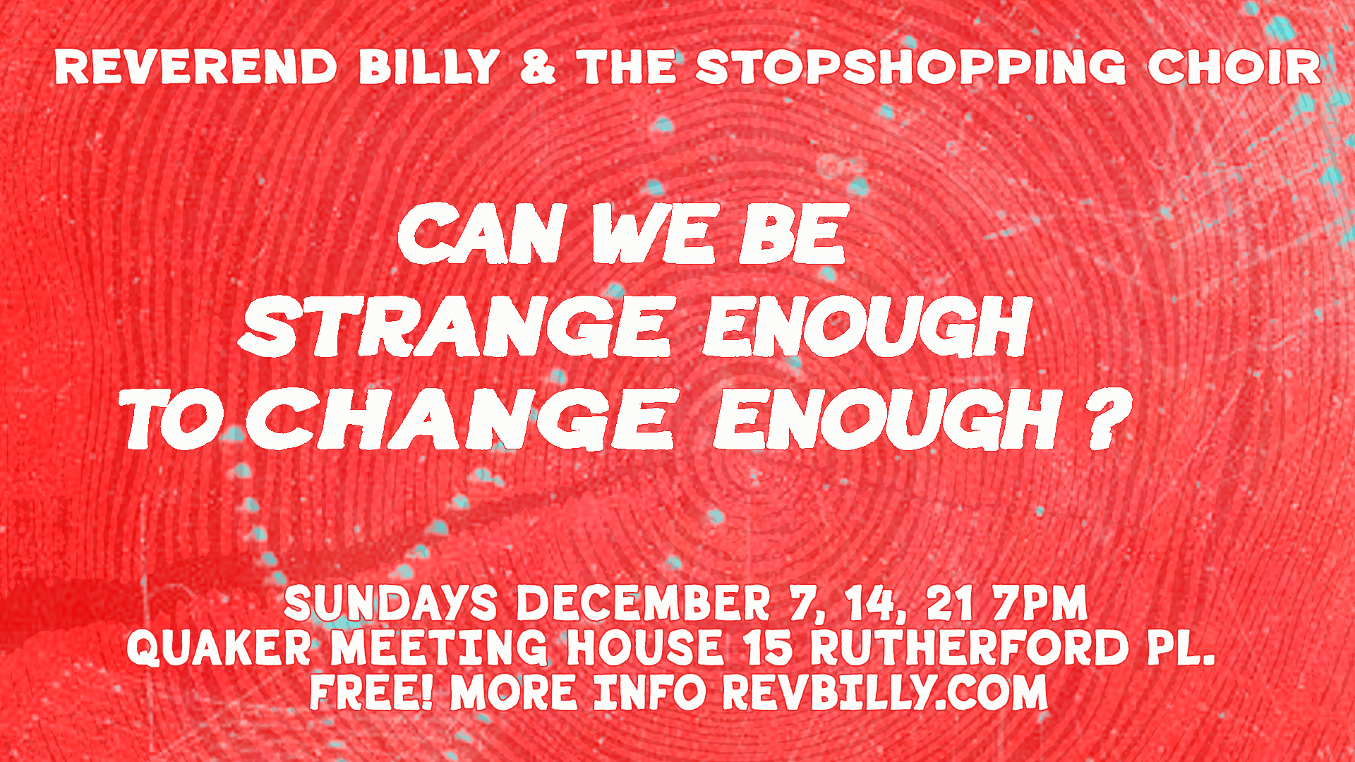 The traditional New York performances by the Church of Stop Shopping in the shopping season shift to the 500 seat Quaker Meeting House on the edge of the East Village and Gramercy.
