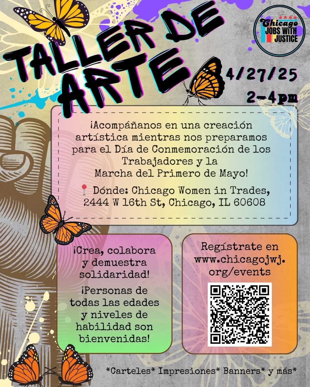 We’re coming together to make powerful art that speaks to the strength, struggle, and solidarity of workers everywhere. Help us create banners, posters, and other pieces for Workers’ Memorial Day and the Chicago May Day March.