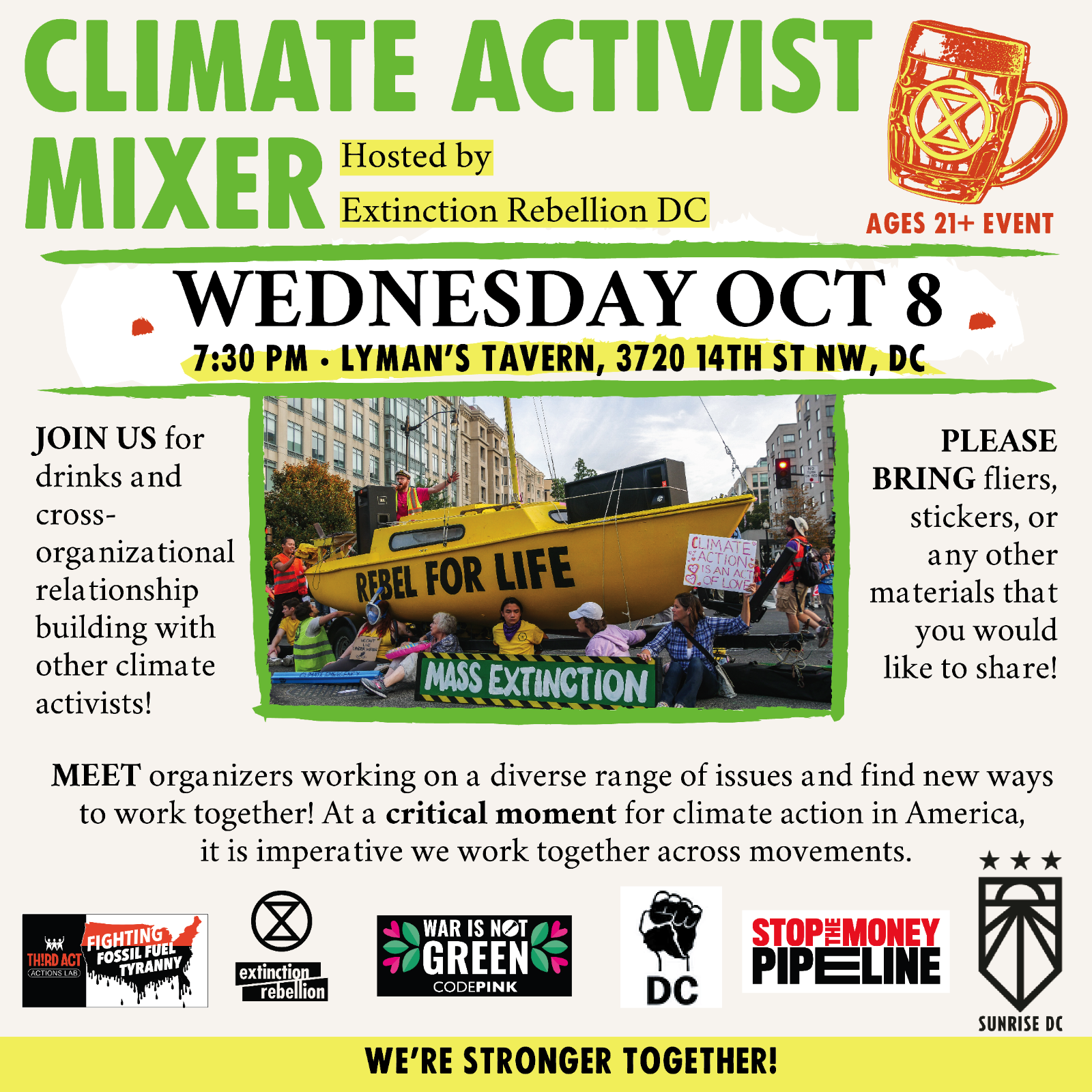 JOIN US for drinks and cross-organizational relationship building with other climate activists!