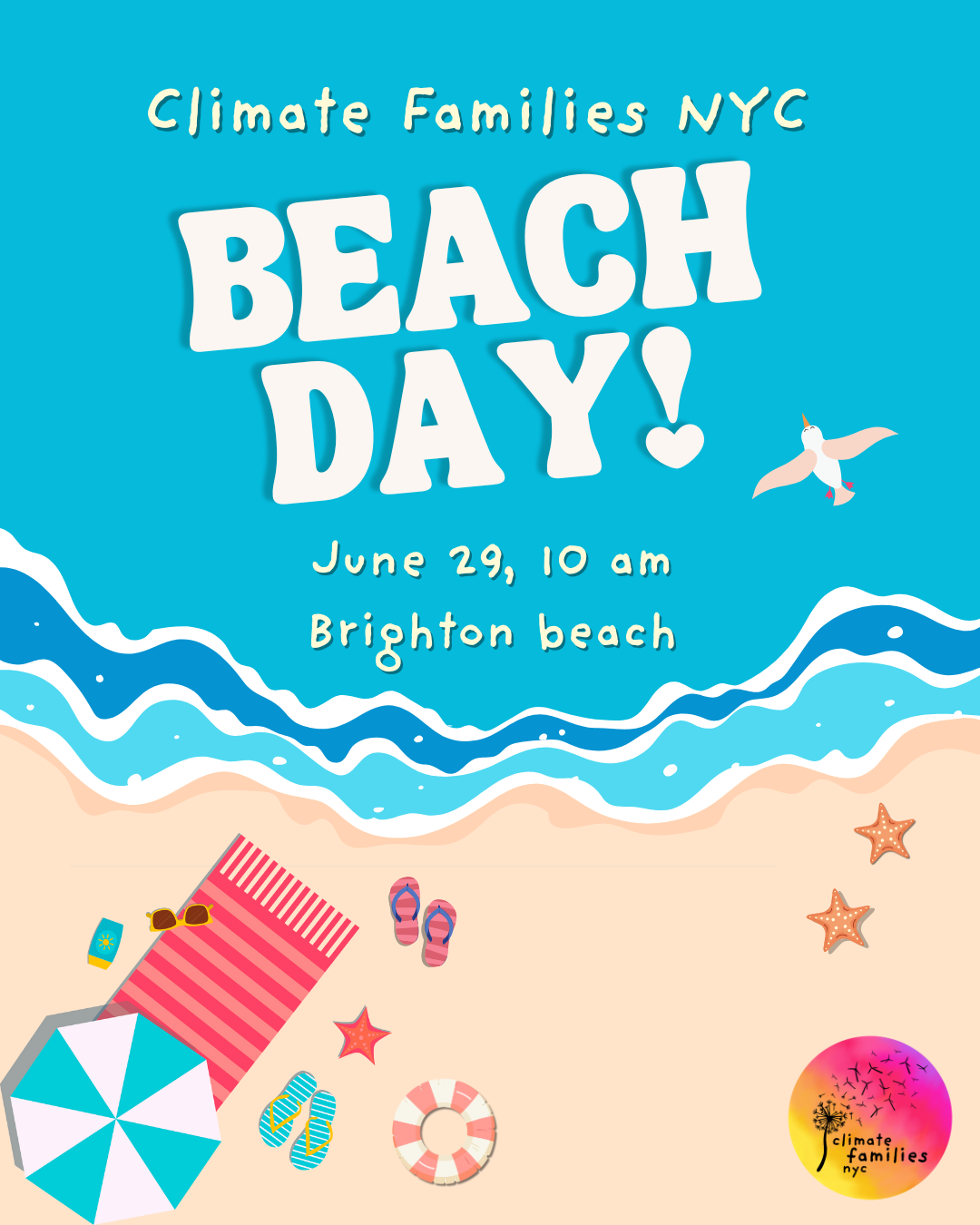 Join us for a Climate Families day at the beach! Bring snacks to share & everything you need for a beach day with your kiddos. Please RSVP for the exact location on the beach.