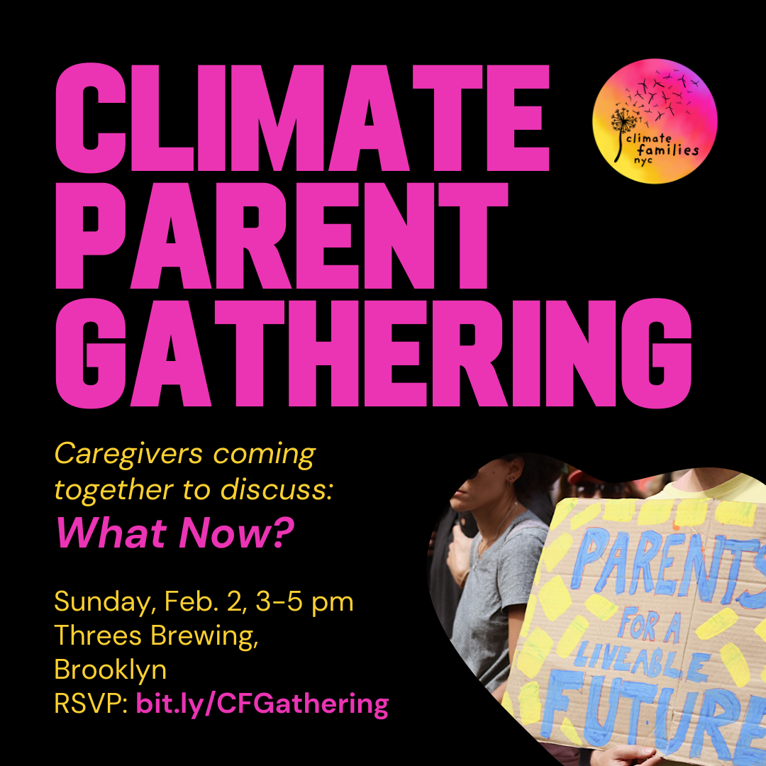 Join Climate Families NYC for drinks, snacks, community and discussion about how we move forward together for climate justice in the Trump era.