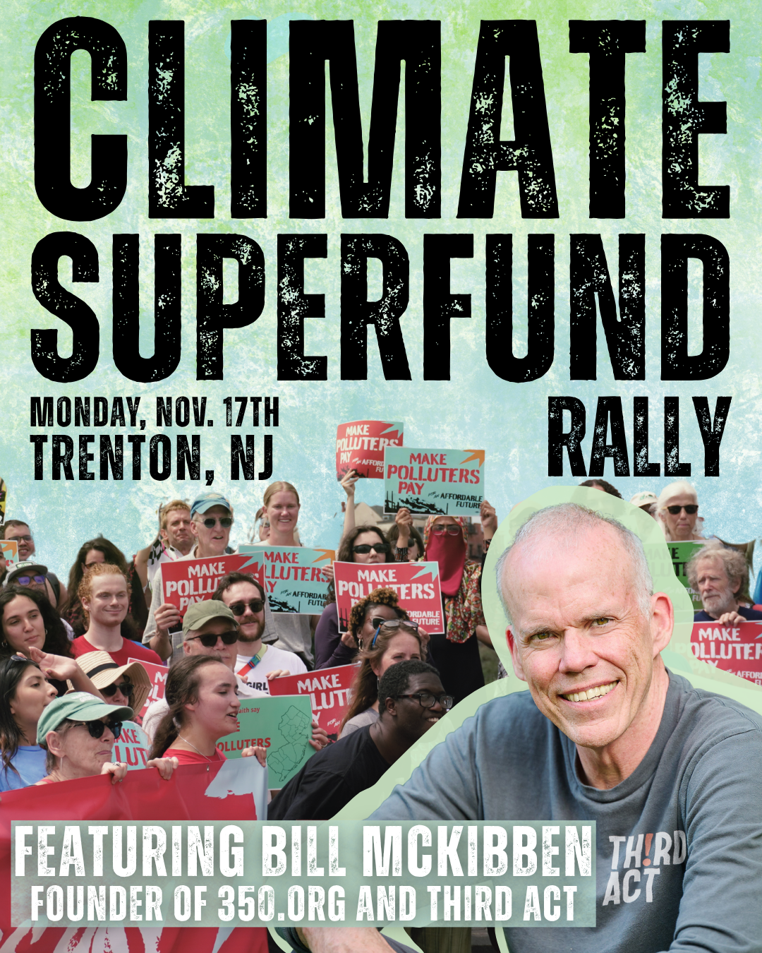 This day of action brings together environmental, labor, and community organizations including Empower New Jersey, Food & Water Watch, Climate Revolution Action Network, GreenFaith, Clean Water Action, Environment New Jersey, Working Families Party, Peoples Organization for Progress, UU Faith Action, Make the Road New Jersey, League of Women Voters NJ, Ironbound Community Corporation, League of Conservation Voters NJ, Sierra Club NJ, Emgage, and Third Act — just to name a few! We're also honored to have a very special guest on November 17th: world-renowned environmentalist and author Bill McKibben will be joining us for our 12PM rally!