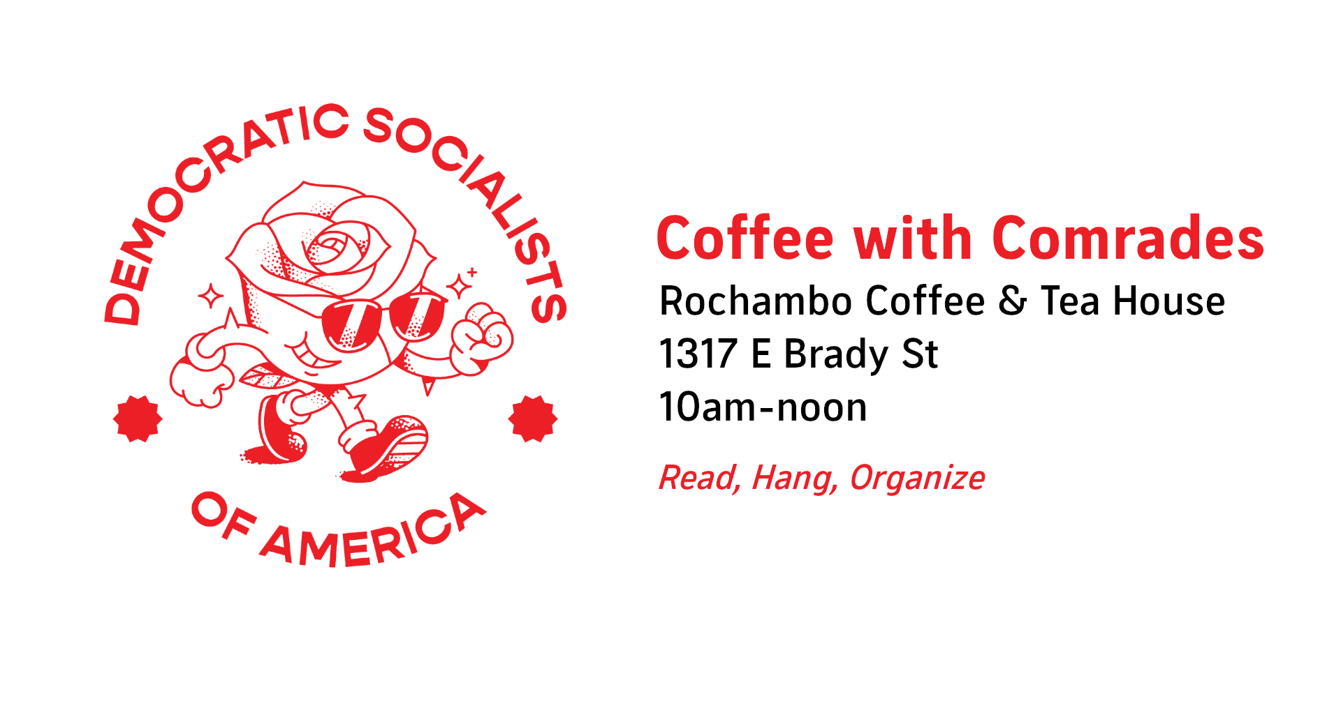 Join us for Coffee with Comrades. It's a casual, small group gathering to get to know other members, discuss local organizing, talk theory, and learn about what DSA has been doing in Milwaukee. Feel free to bring printed articles to share and discuss.