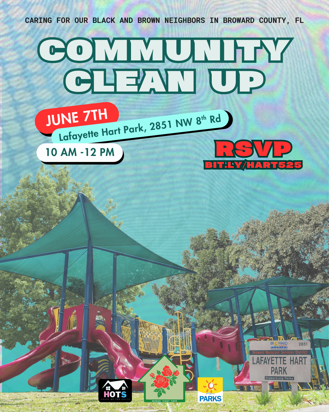 Join us for a community cleanup with our partner organization TMPI HOTS Program and the Broward County Parks & Recreations Center! We'll be participating in and organizing regular neighborhood cleanups as part of our Broward Tenant Power Campaign!