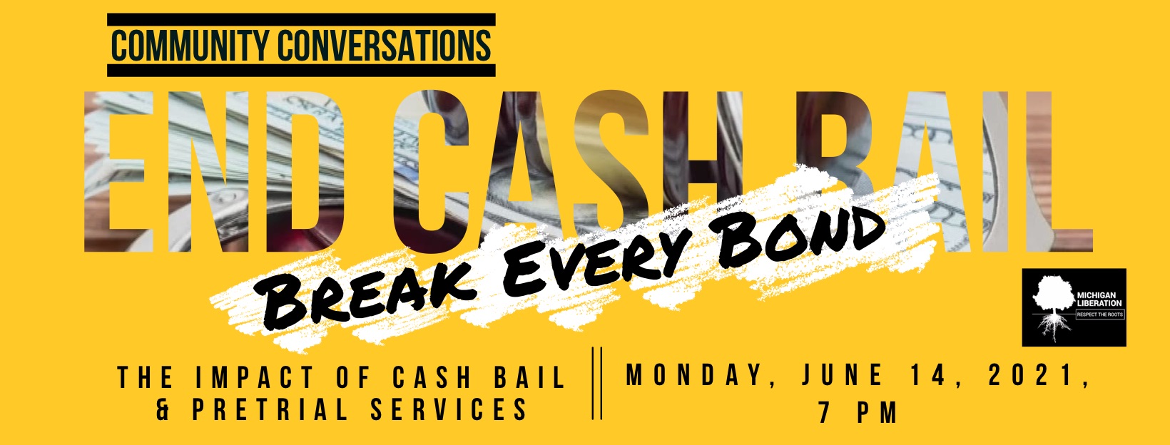 From shackling folks with electronic monitors, investing in risk assessment over community. Please join organizers and community leaders including, Michigan Liberation’s Earl Burton, The Advancement Project’s, Ashley Carter and ACLU Michigan’s, Rodd Monts for a community conversation as we break down what’s wrong with cash bail, present an overview of the cash bail system, alternatives to Pretrial Services, recent bail reform measures, and legislation in the works to end cash bail in Michigan.
