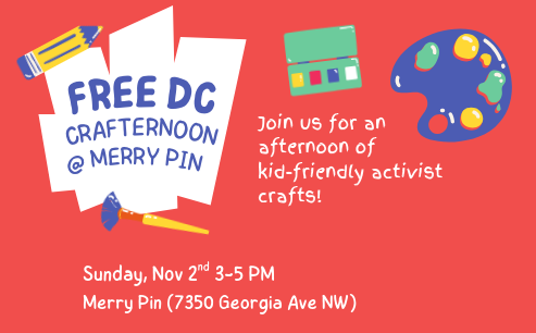 Join Free DC at Merry Pin for an "crafternoon" of activism-themed, kid-friendly crafts. We'll be making a collaborative art project to hang in Merry Pin's windows as well as other crafts - plus a bucket drumming workshop led by Resistance Beats. (Craft materials are generally provided, however for the bucket drumming workshop please bring a 5 gallon plastic utility bucket if you have one - we will have extras but supplies will be limited.)