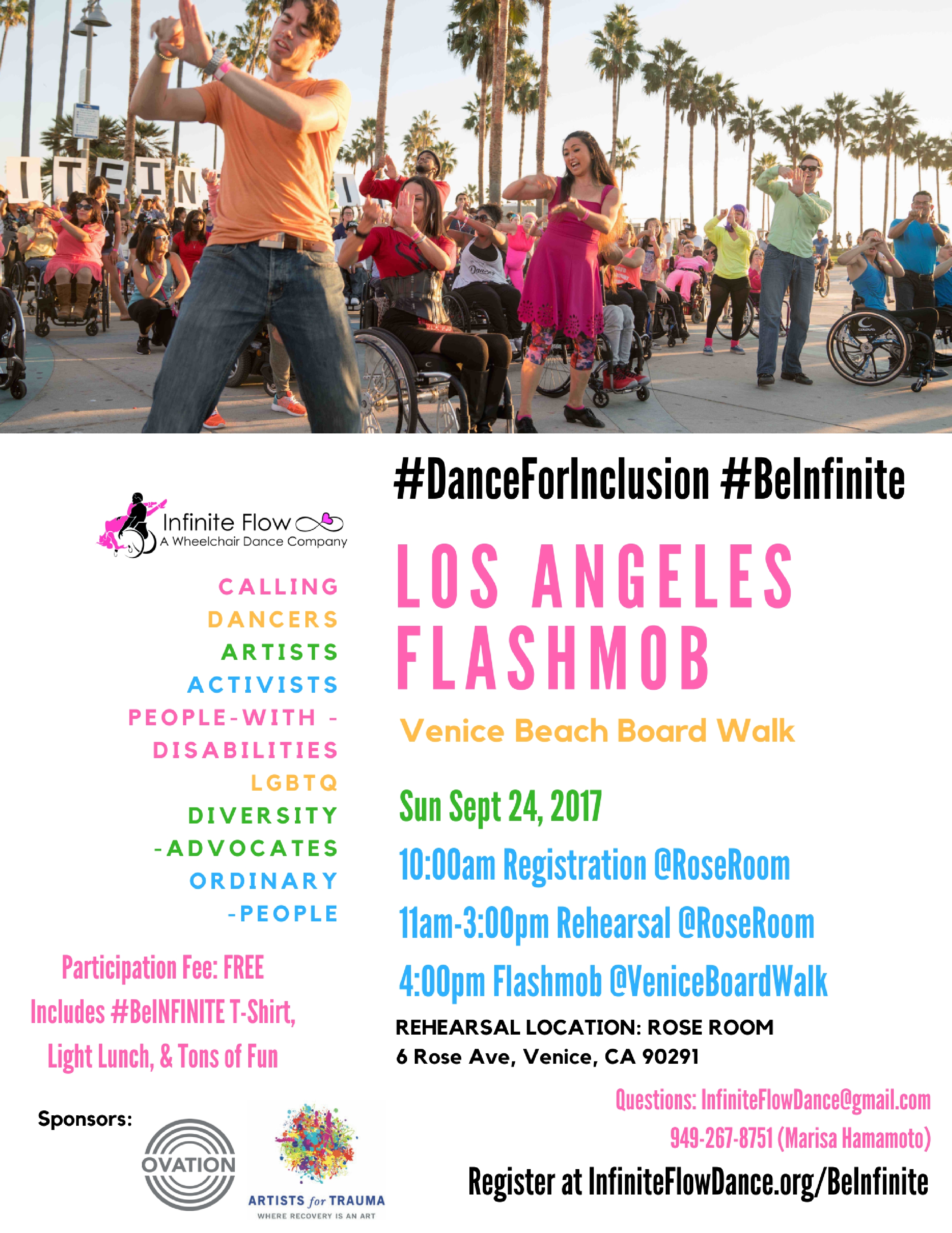 If you are interested in volunteering or sponsoring the #DanceForInclusion Flashmob on Sept 24, contact Marisa at 949-267-8751 or InfiniteFlowDance@gmail.com.