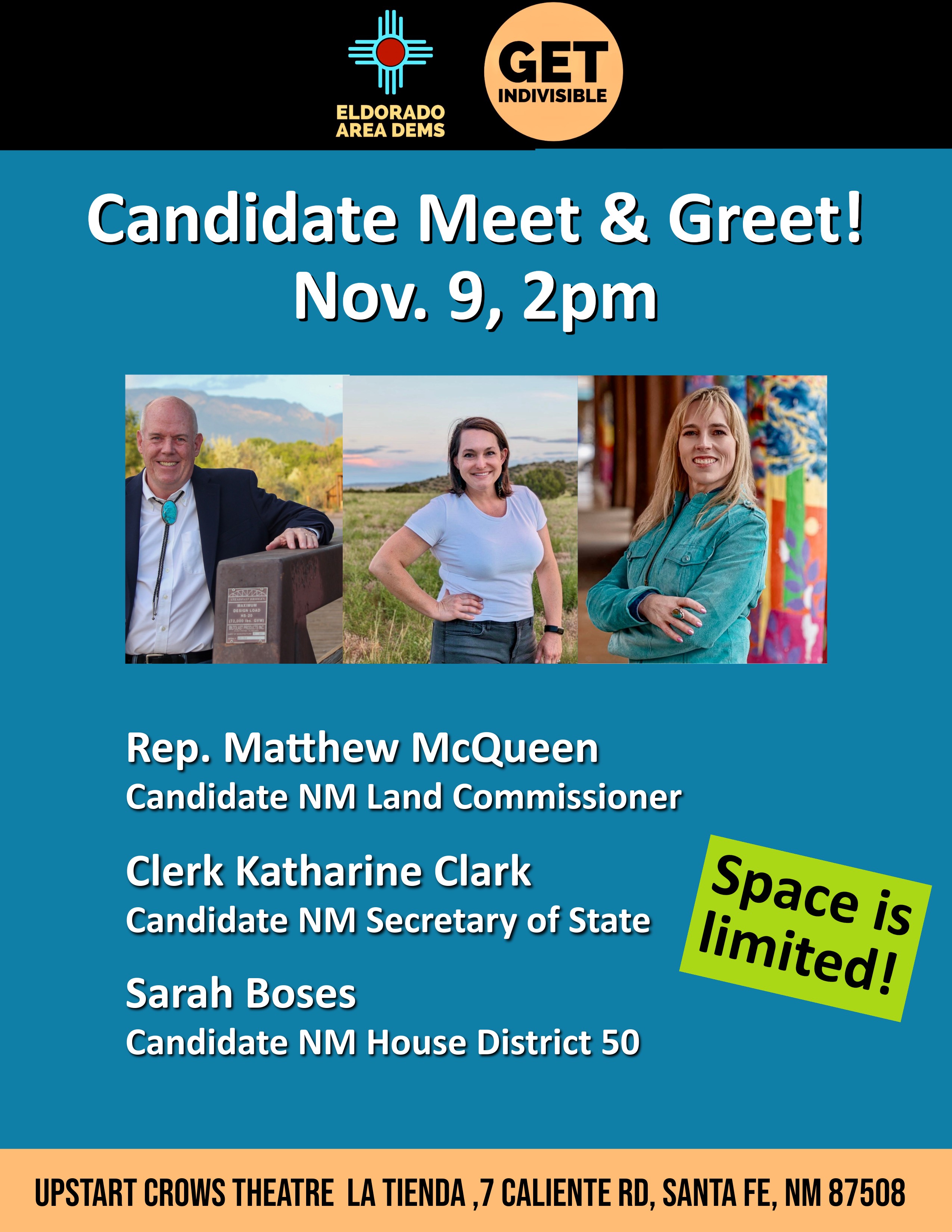 Greater Eldorado Together Indivisible (GET) and Eldorado Area Dems invites you our first Democratic Candidate Meet & Greet of the 2026 Primary season! This is a great opportunity to meet the candidates, ask questions and speak with them directly about your priorities. RSVP now to reserve a seat, space is limited.