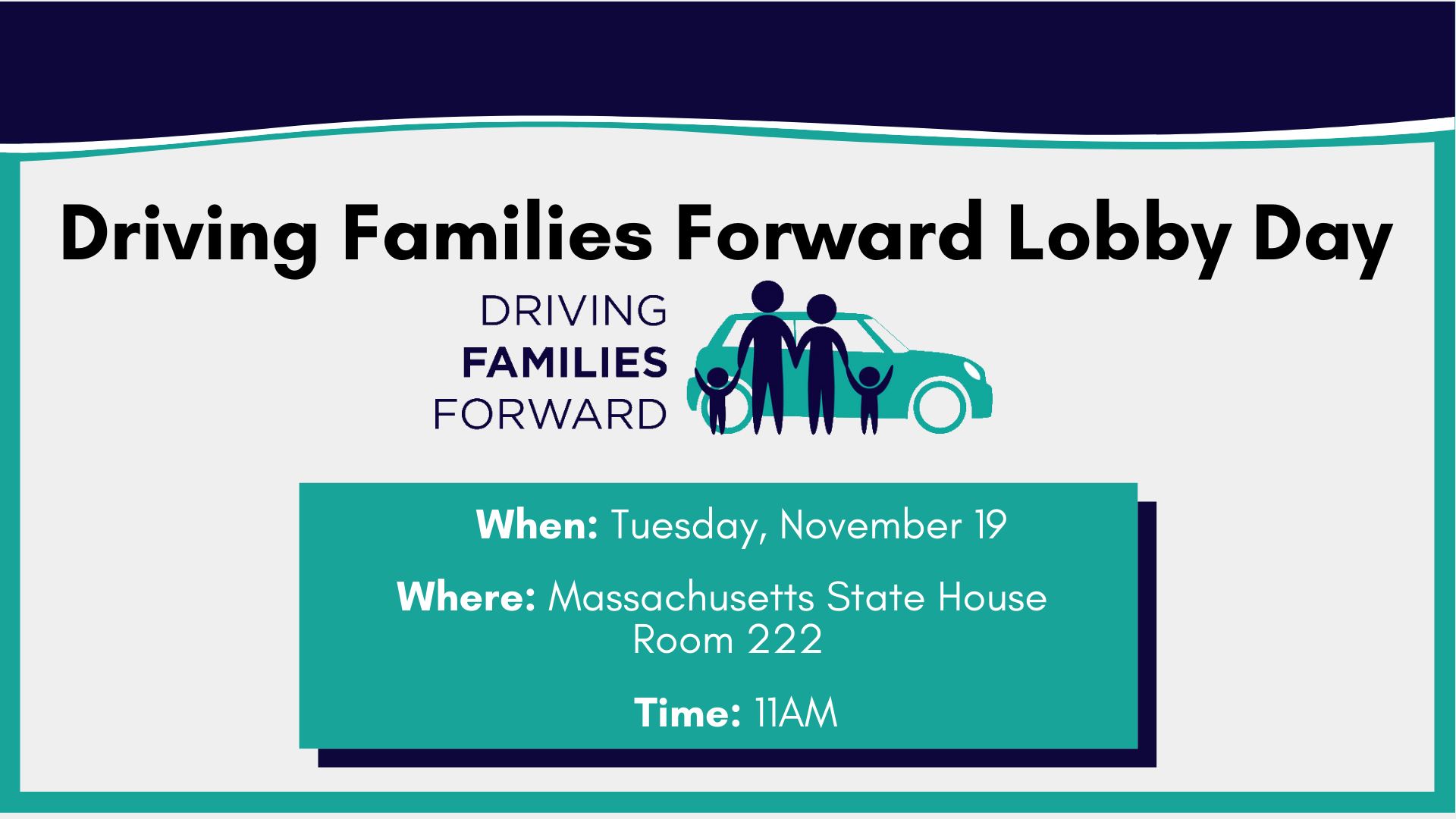We invite you to join the Driving Family Forward’s Lobbying Day, on Tuesday November 19th starting at 11am in Room 222 at the Massachusetts State House. We will be lobbying state legislators to support An Act Relative to Work and Family Mobility. This bill would enable all qualified state residents to apply for a standard Massachusetts driver’s license, regardless of immigration status, while keeping our Commonwealth in full compliance with REAL ID requirements.
