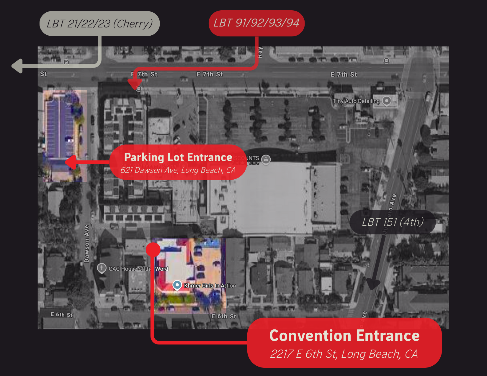 The Youth Movement and Education Center is located in a former church at 2217 E. 6th St. Though it's a relatively nondescript building, you can see the Long Beach Forward logo from the 6th Street side. Follow the signage to the back of the building for the entrance to the Convention hall.