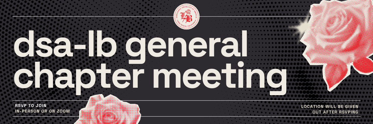The hall will be open the hour before the General Meeting to mingle with comrades, get some coffee (or tea) and meet with some Committees ahead of time to learn more about the work going on across DSA-LB!
